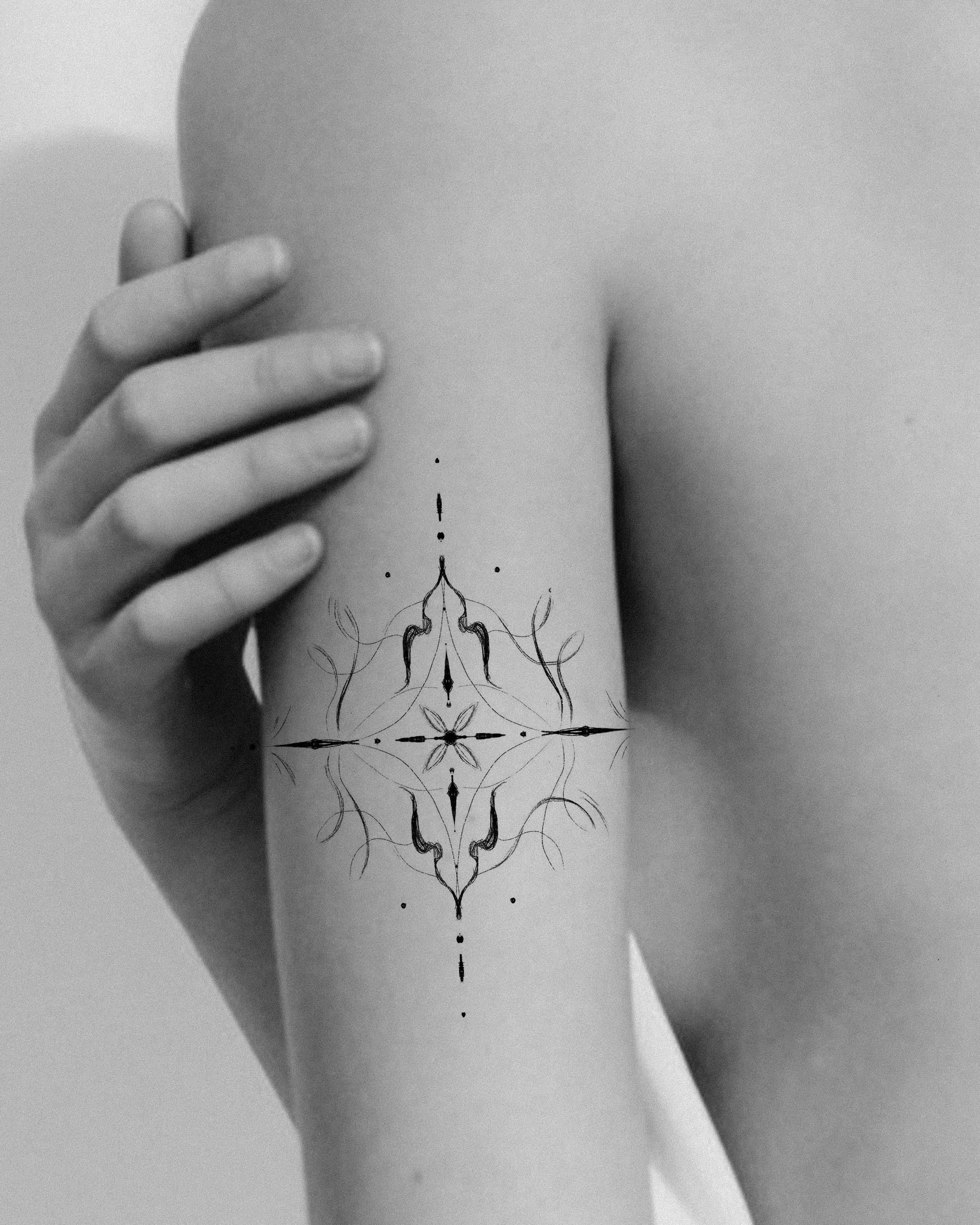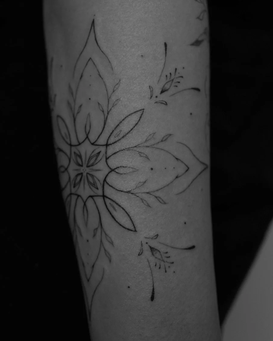 Ornamental tattoos are decorative pieces involving flowing patterns, fine line. Those tattoos are a way to adorn your body with subtle elegance.